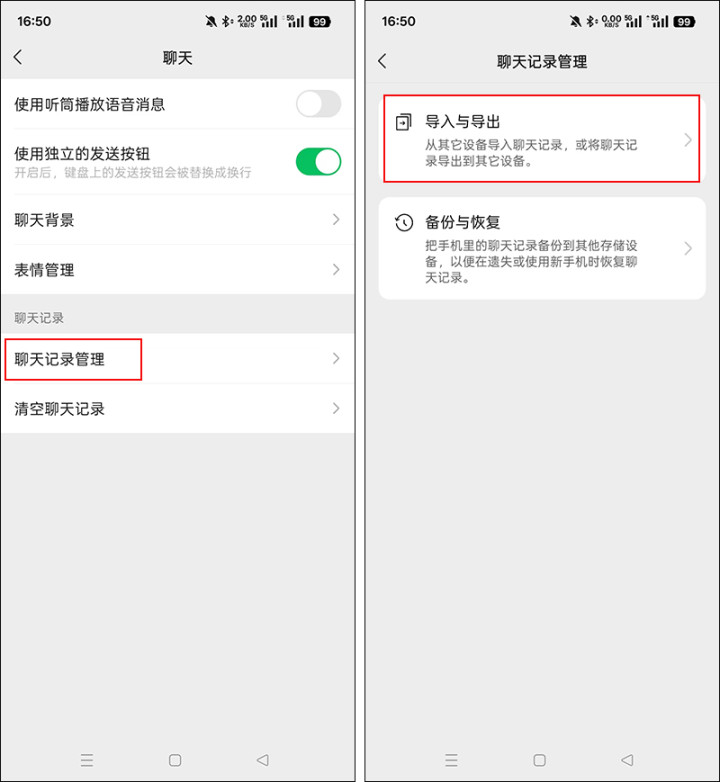另外,微信还对聊天记录功能作了新的调整,这个功能基本上人人都用得着,换新手机或者是误删聊天记录,都可以通过这个方式避免聊天记录丢失和找回聊天记录,只是这个功能隐藏起来了,很多人都没有注意,一起来瞅瞅。点击微信右下角的【我】-【设置】-【聊天】即可看到【聊天记录管理】,点击进入,原来【聊天记录管理】下是“迁移”和“备份与恢复”这两个功能,现在“迁移”换成“导入与导出”了,表达更直接简单了。给大家简单说说这两个功能怎么实现避免聊天记录丢失和找回删除的聊天记录。